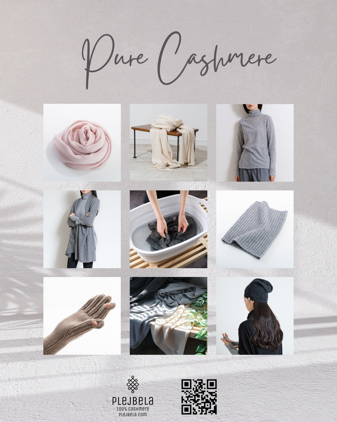 At PlejBela, we have prepared a special item that lets you experience this “final touch” for yourself. We deliver a cashmere neck warmer or cap before the fulling process, so you can finish it at home to your preferred texture — a completely new approach.